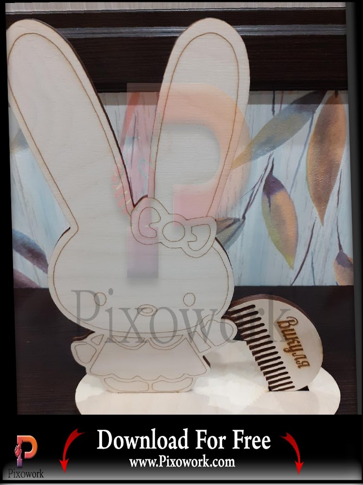Decor DXF File Bunny Hair Tie Stand With Wooden Hair Comb